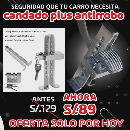 protege tu auto en segundos. el candado de pedal que evita robos , seguridad extra para  tu vehiculo .tu tranquilidad vale mas que cualquier riesgo, convierte tu auto en reto imposible para ladrones, bloquea el pedal y duerme tranquilo